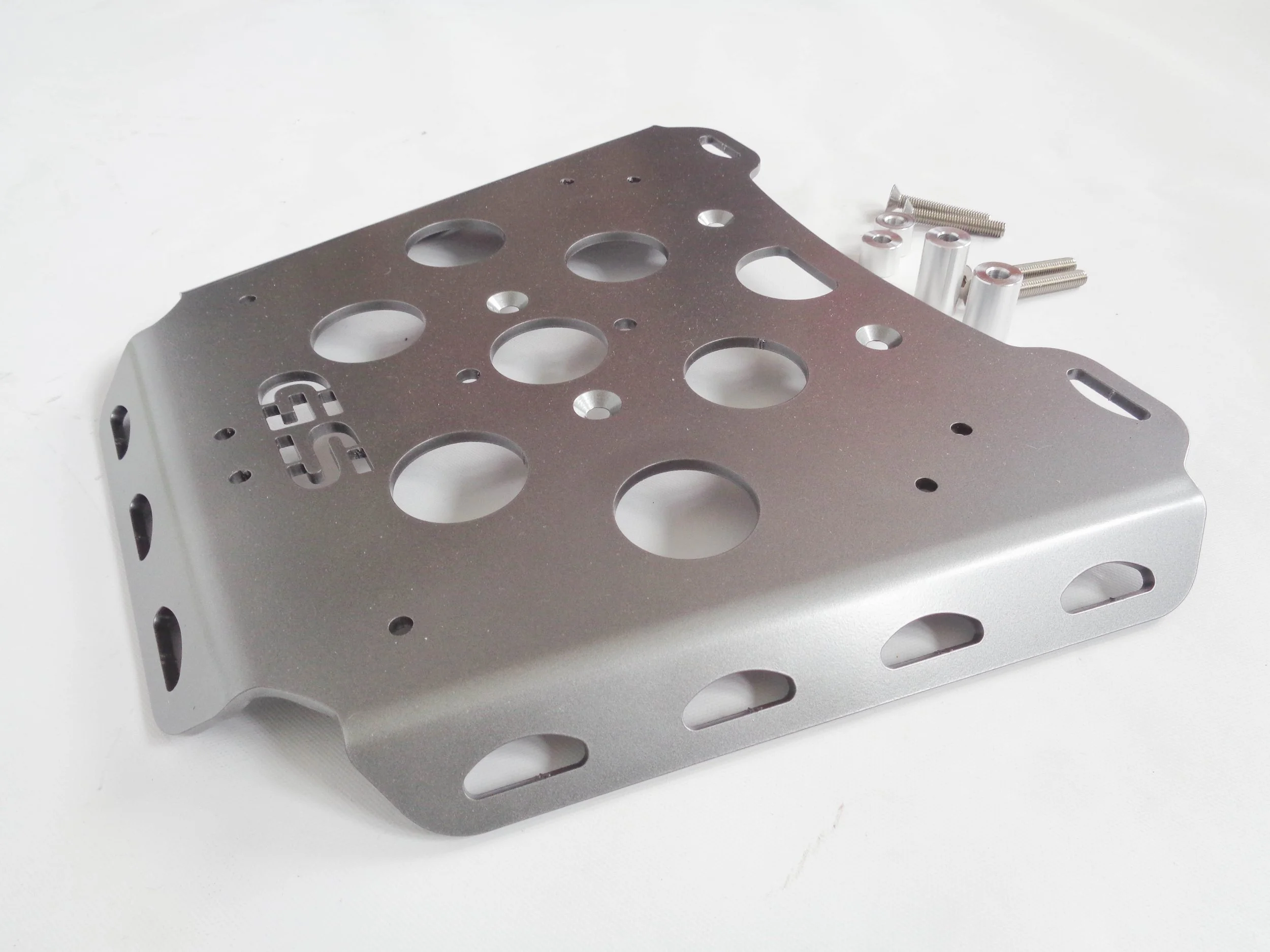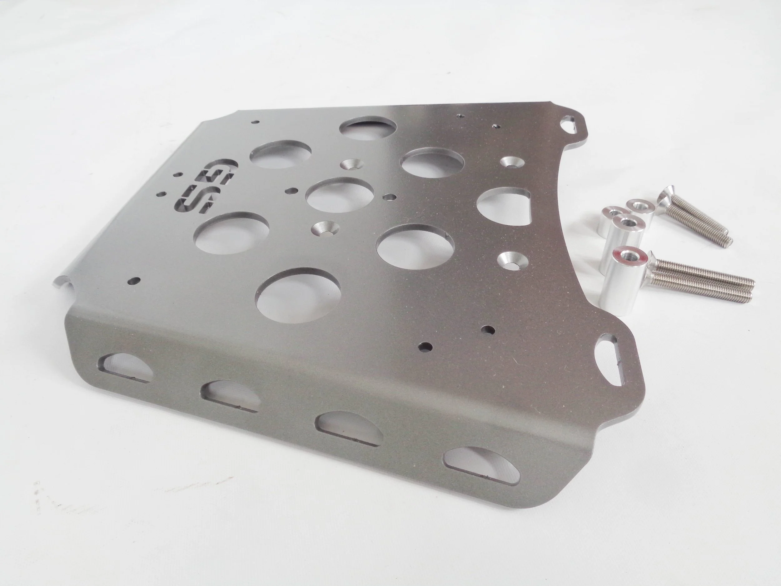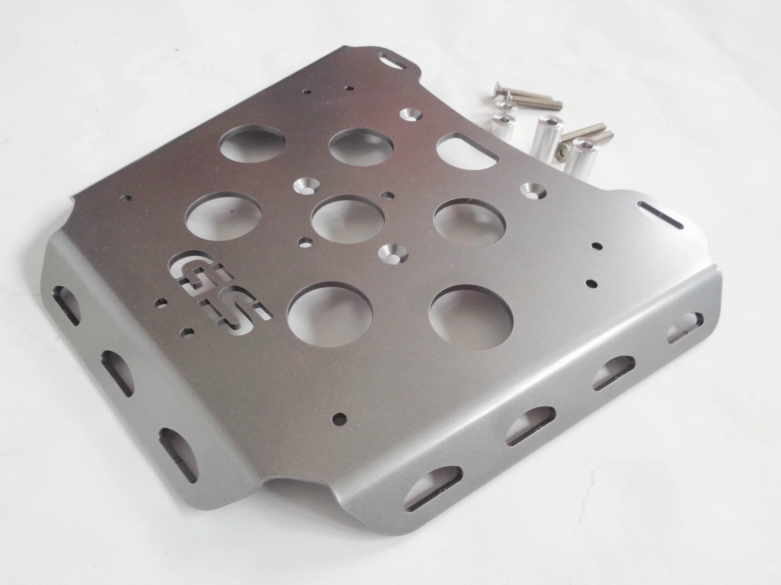 Delrin handlebars bushings R1150GS / GSA windscreen adjusters R1150GS / GSA adjustable headlights mounts R1150GS / GSA adjustable center stand stopper R1150 GS / GSA oil cooler fan R1150 GSA rear shelf F700/800 GS rear shelf F700/800 GS heat shield Brake pedal riser Smartphone holder Honda CRF1000 parcel shelf JBL 2402 /2404 / 2405 stainless stands